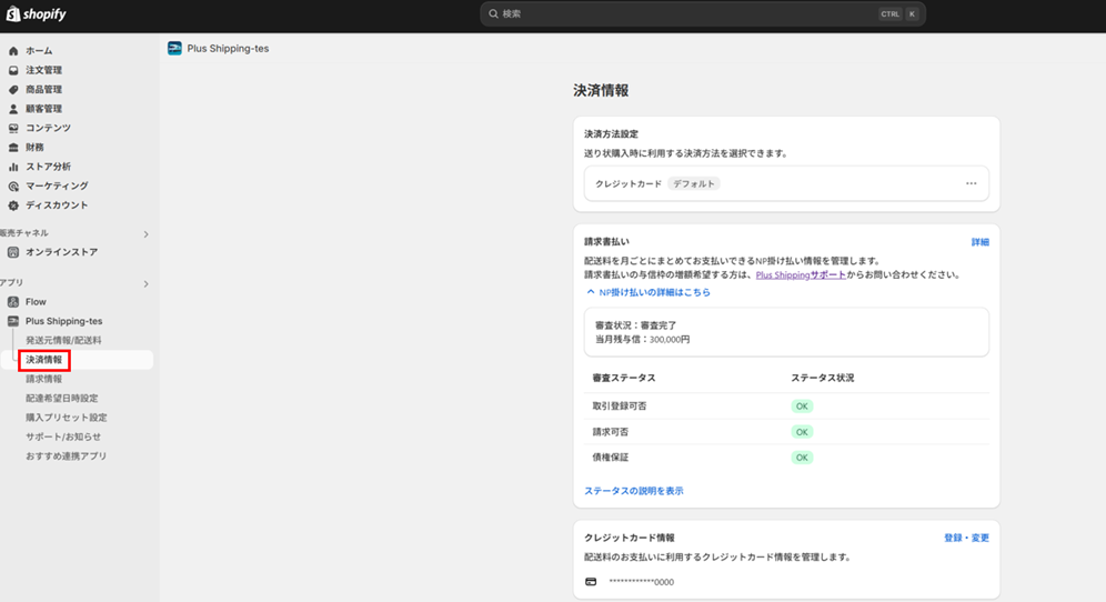 ④決済方法設定が、デフォルトの決済手段に変更されていることを確認