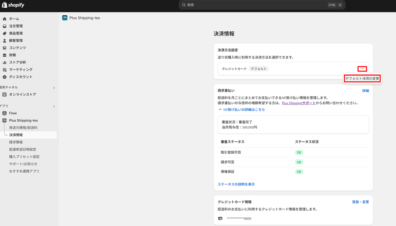 ②決済方法設定「・・・」をクリックし、「デフォルト決済の変更」を押下