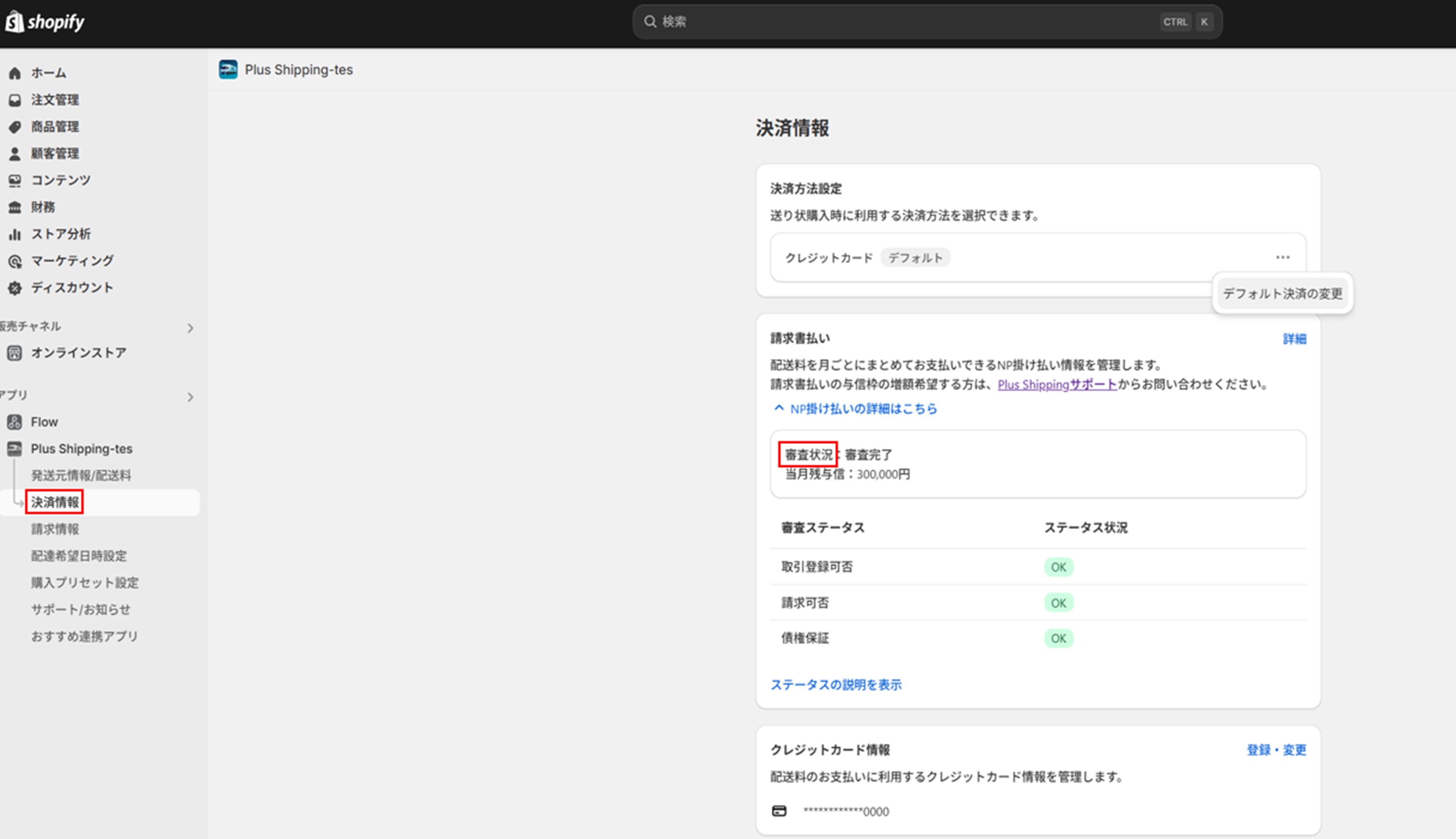 アプリサイドメニュー「決済情報」を開き、審査状況をご確認ください。